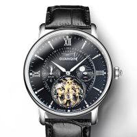 冠琴(GUANQIN)手表防水夜光全自动机械表双日历镂空潮流时尚腕表