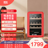 HCK哈士奇70CTC 复古红酒柜20瓶恒温家用嵌入式小型冰吧冷藏冰箱-红色
