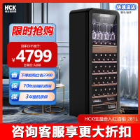 HCK哈士奇208R圆弧红酒柜92瓶恒温嵌入式客厅超薄冷藏冰吧冰箱黑色雪茄酒柜