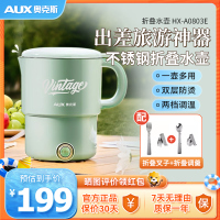 奥克斯(AUX)便携式烧水壶HX-A0803E电水壶折叠不锈钢水壶出差旅行便捷式烧水壶保温一体家用小型(带叉子)