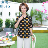 蓝旗 夏季新款妈妈装波点印花衬衫洋气短袖中年气质休闲小衫
