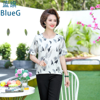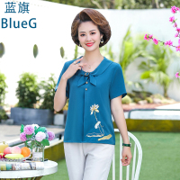 蓝旗 夏季新款妈妈装短袖T恤时尚洋气中年阔太太减龄气质优雅小衫