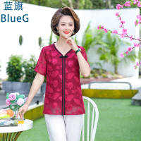 蓝旗 夏季新款妈妈装优雅短袖雪纺洋气中年短款时尚绣花小衫