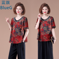 蓝旗夏季2021新款妈妈装圆领宽松舒适小衫
