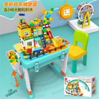 费乐 新款升级可增高大颗粒积木桌1桌1椅+265大颗粒动物积木套装 多功能儿童玩游戏桌 2-7岁 兼容乐高 ABS材质