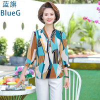 蓝旗 夏季新款妈妈装七分袖雪纺衫中年洋气时尚高贵气质小衫