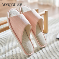 遠港春秋棉麻拖鞋女夏室内布艺木地板防滑防臭家用亚麻拖鞋男四季