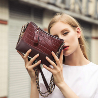 2019时尚潮款质感鳄鱼纹牛皮流浪包ins复古链条水桶包