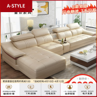 苏宁放心购北欧真皮沙发头层牛皮现代简约客厅整装转角实木L大户型组合A-STYLE家具