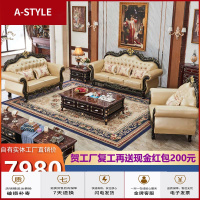 苏宁放心购客厅真皮沙发 欧式美式现代实木花头层牛皮别墅家具123组合套装A-STYLE家具