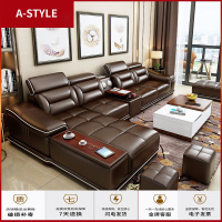苏宁放心购 沙发床头层牛皮真皮沙发客厅整装组合皮艺沙发现代简约家具可折叠A-STYLE