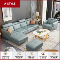 苏宁放心购北欧轻奢真皮沙发简约小户型客厅皮沙发三人位转角123组合小沙发A-STYLE家具