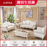 苏宁放心购欧式真皮沙发123组合简欧客厅实木美式头层牛皮三人位白色家具A-STYLE家具