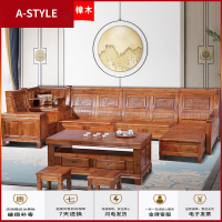 苏宁放心购现代金丝胡桃木中式全实木沙发组合简约客厅冬夏两用带储物花A-STYLE家具