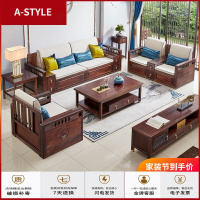 苏宁放心购新中式全实木沙发客厅组合中国风现代中式禅意简约轻奢实木家具A-STYLE家具