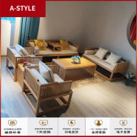 苏宁放心购新中式沙发民宿禅意别墅茶室原木色组合现代布艺酒店定制实木家具A-STYLE家具