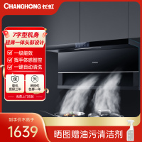 长虹(CHANGHONG)7字形抽油烟机超薄一体头部设计 顶侧双吸 360°热炫洗 挥手智控