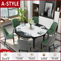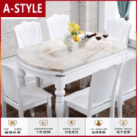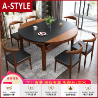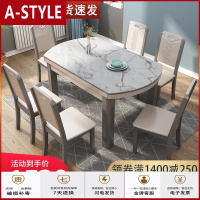 苏宁放心购大理石实木餐桌椅组合现代简约可伸缩折叠家用小户型吃饭桌子圆形A-STYLE