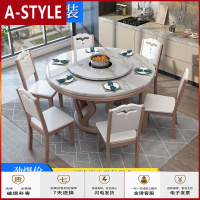 苏宁放心购中式大理石餐桌椅组合实木圆形带转盘现代简约家用饭桌6/12人圆桌A-STYLE