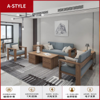 苏宁放心购新中式沙发禅意现代客厅样板房实木沙发组合别墅民宿真皮沙发家具A-STYLE家具