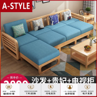 苏宁放心购新中式实木沙发组合家用客厅木质冬夏两用小户型经济型储物木沙发A-STYLE家具