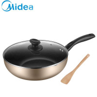 美的(Midea)典雅金麦饭石色涂层不粘炒锅家用炒锅电磁炉煤气灶适用炒菜锅平底锅煎锅增竹铲 香槟金 28CM金色送竹铲