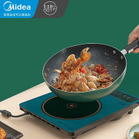 美的(Midea)喆物煎锅平底不粘锅麦饭石色煎蛋煎饼牛排燃气电磁炉通用 [28cm 深煎锅]带盖 3~5人用
