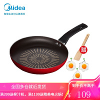 美的平底锅不粘锅小煎蛋饼牛排烙饼家用电磁炉专用燃气适用煎锅燃电通用 活力红 24CM平底煎锅