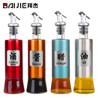 油壶不锈钢玻璃油瓶酱油瓶醋瓶控油防漏嘴调料瓶调味罐盒家用厨房 四件套 彩色四只装 300ML