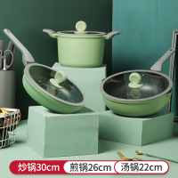 3件套(炒锅30CM+煎锅26CM+汤锅22CM) 炊大皇三件套锅具套装北欧厨房四件套麦饭石不粘锅燃气电磁炉炒锅