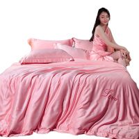 唛乐斯Mallas双面水洗真丝刺绣款四件套 简约素色优雅朴素四件套床单款床笠款可选