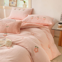 牛奶绒毛巾绣四件套秋冬保暖加厚床单款学生三件套家用被套床单床笠