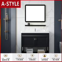苏宁放心购落地式洗脸盆柜组合小户型洗漱台黑色太空铝浴室柜组合洗手台盆A-STYLE
