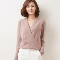 雪米贝奴交叉v领羊毛衫毛衣女士慵懒风宽松外穿复古羊毛打底上衣秋冬