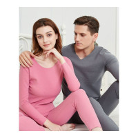 [双面绒]秋衣恒温自发热抗菌2020保暖内衣男士女士情侣夫妻V领打底裤贴身修身双面德绒秋衣秋裤套装秋冬季