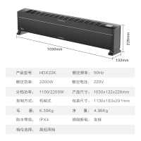 美的(Midea)踢脚线取暖器浴室防水节能加热器家用办公电暖气移动地暖电暖器 HDX22K(耀黑)