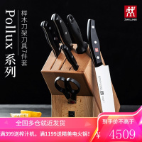 德国双立人Pollux波格斯系列厨房刀具套装菜刀家用剪刀水果刀斩骨刀榉木插刀架刀具7件套