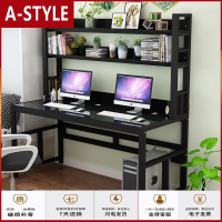 苏宁放心购电脑台式桌家用简约书桌带书架一体写字桌卧室钢化玻璃电脑桌A-STYLE家具