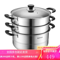 苏泊尔(SUPOR)蒸锅304不锈钢三层复底蒸笼汤煮锅蒸馒头包子多功能大容量EZ1226S01 26厘米