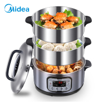 美的中式电蒸锅智能家用3层多功能全自动大容量饭菜蒸笼锅 [银灰色]12升