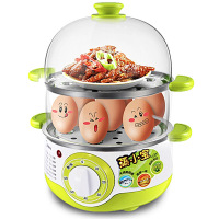 绿 美的(Midea)煮蛋器蒸蛋器 家用迷你早餐机神器 双层多用电蒸锅智能防干烧 煮鸡蛋