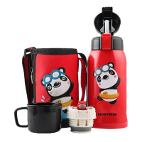 网红优选3D浮雕踏浪熊猫款杯具熊BEDDYBEAR儿童保温杯带吸管儿童水杯316不锈钢宝宝儿童保温壶600m