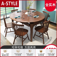 苏宁放心购北欧全实木餐桌椅组合现代简约可折叠伸缩小户型长方形桌变圆餐桌A-STYLE家具