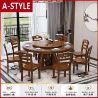 苏宁放心购实木餐桌带转盘饭桌餐馆吃饭桌子10人家用经济型大圆形餐桌椅组合A-STYLE家具