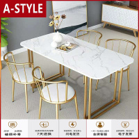 苏宁放心购轻奢ins餐桌大理石现代简约餐桌椅组合小户型饭桌甜品店休闲岩板A-STYLE