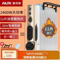 奥克斯取暖器油汀丁暖风机速热烤火炉家用节能省电暖器气片大面积 白+金11片可定时