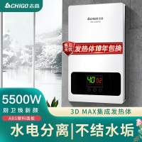 玉石白+标准款+配件礼包+5500W 志高(CHIGO)即热式电热水器 速热小厨宝家用集成淋浴洗澡免储水多功率