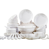DAIRYQUEEN景德镇天鹅湖58头品锅简约欧式家用陶瓷餐具碗碟套装套装餐具碗碟盘勺子家用套装