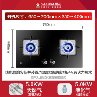 樱花燃气灶煤气灶BBG09天然气液化气双灶家用嵌入式猛火灶 黑色 液化气