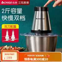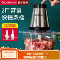 志高绞肉机家用电动大容量加厚玻璃碎肉机不锈钢蒜泥器小型多功能婴儿辅食料理棒搅拌饺子搅馅菜剁辣椒搅碎机 钢碗双刀2斤